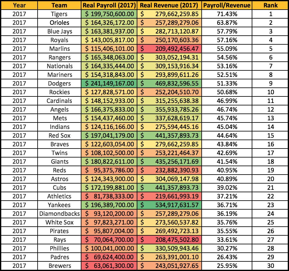 If I had to pick one number that sums up the state of the Pirate franchise, it would be 35. In 2017, the Pirates spent only 35 percent of team revenue on payroll, fifth lowest in the league. But while three of the four teams below them each committed more than $100 million to free agent spending this offseason — the Brewers ($105m), the Phillies ($169m), and the Padres ($150m) — the Pirates spent only $4 million. Not surprisingly, the Major League Baseball Players Association (MLBPA) recently filed a grievance against Pittsburgh for their lack of spending.